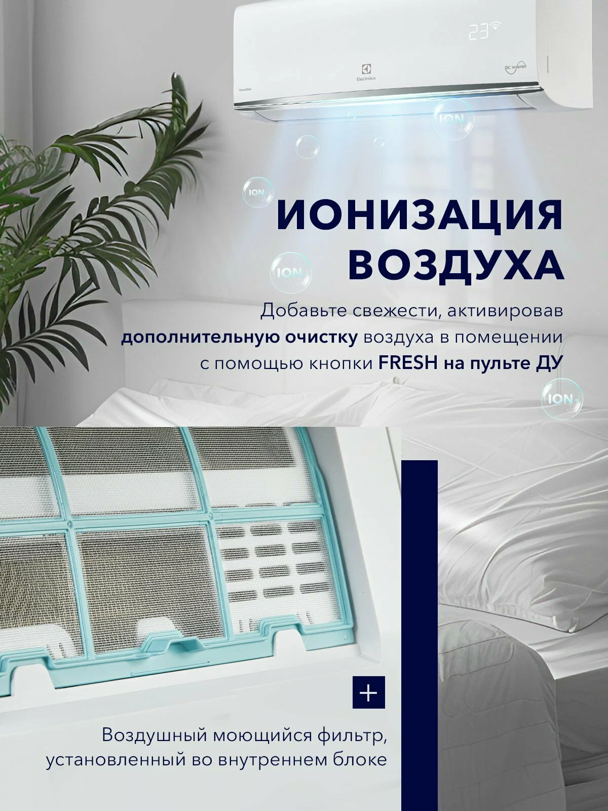 Обновленная модель 2025г. добавлена функция ионизации и плавная регулировка скорости вентилятора внутреннего блока от 0-100%
